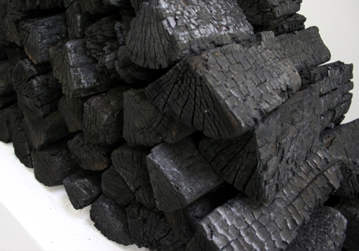 a half burnt stack of wood