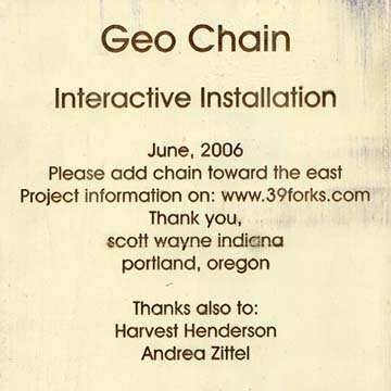 Andrea Zittel for letting me install the beginning of the Geo Chain on her property, and being so kind